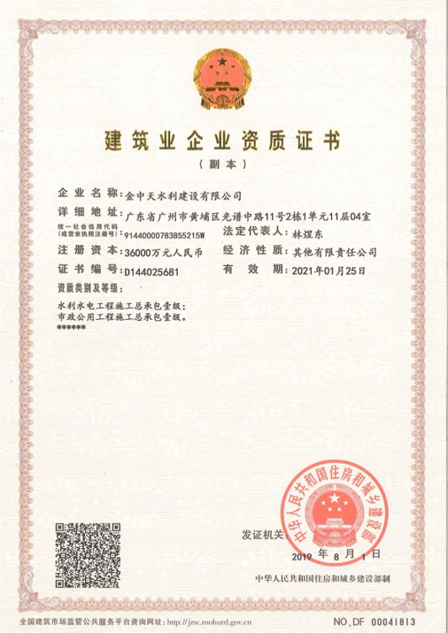 集团公司先后经中华人民共和国住房和城乡建设部和广东省住房和城乡建设厅批准,获得市政公用、建筑、水利水电、机电工程施工总承包一级资质;环保工程、古建筑、钢结构、建筑机电安装、城市与道路照明、建筑装修装饰、消防设施、建筑幕墙、电子与智能化、地基基础工程专业承包一级资质;风景园林、建筑装饰、消防设施、建筑幕墙、建筑智能化系统工程设计专项甲级;市政公用工程、房屋建筑工程监理专业资质甲级。